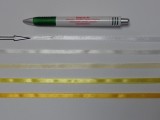 Fehér színű, 6 mm széles szaténselyem szalag.