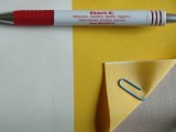 Vízhatlan, UV álló, ponyva jellegű anyag fehér-sárga csíkos színben. 100% poliészter. Felhasználási területe igen széleskörű. Többek között hintaágy árnyékoló tető, árnyékoló előtető, napellenző, terasz esővédő függöny, kerti bútor takaró ponyva, stb. készítésére alkalmas.