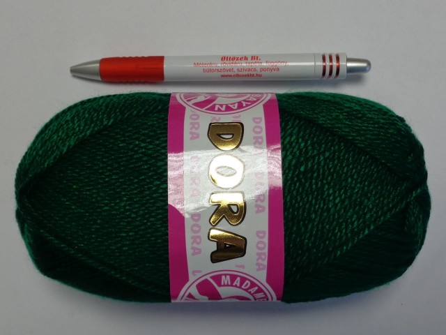 Méregzöld színű DORA kötőfonal. Színkódja: 68-es. Puha tapintású fényes akril kötőfonal , ideális kézi és gépi kötéshez, könnyű vele dolgozni.