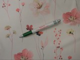 Ekrü alapon mályvás-virágos, mintás, vékony, könnyű "Latina" anyag.