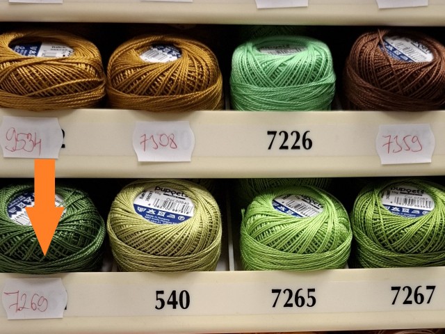 Zöld színű pamut hímzőfonal, színkódja: 7269. Egy gombolyag 10 g-os.