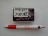 Lilafejű gombostűk dobozban. A gombostűk hossza: 40 mm. Egy doboz kb. 144 db tűt tartalmaz.