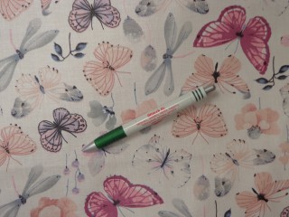 Mintás pamutvászon, fehér alapon rózsaszín-pink virágos (14988)