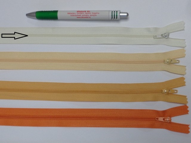 35 cm hosszú, nem bontható, műanyag zipzár, ekrü színben. Ruhába, díszpárnába, táskába ajánljuk.