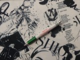 Fekete-fehér, női alakos, mintás, rugalmas pamut jersey.