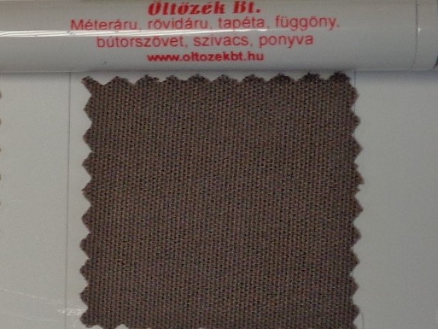 UV álló, vízlepergető, egyszínű szürkésbarna vagy taupe, kültéri vászon. Felhasználható napellenző előtetőnek, szivacs ülőpárnák huzatának.
